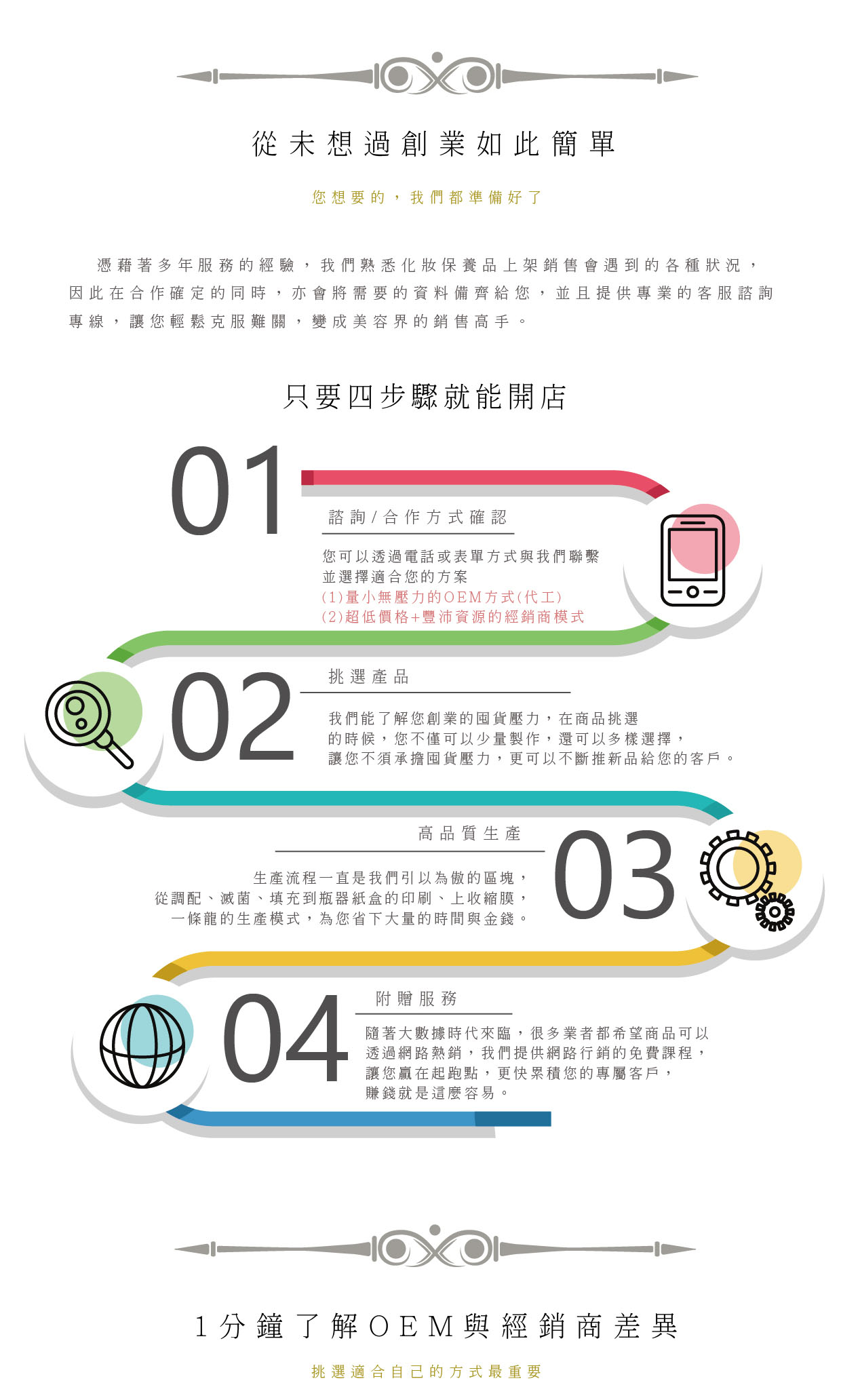 .任何保養品代工以及印刷:1瓶也可以,多到200種也沒問題