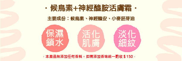 這款候鳥素+神經醯氨活膚霜,可以留住肌膚的水分,提高皮膚的防禦能力;具有長效保濕的功效;可調節肌膚表面的水分,增強肌膚對於外界的抵抗能力。