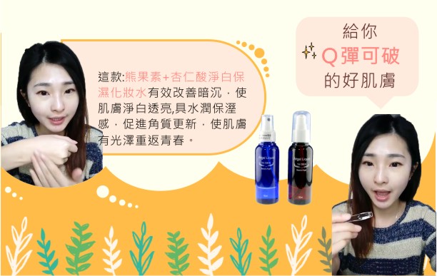 熊果素+杏仁酸淨白保濕化妝水有效改善暗沉,使肌膚淨白透亮,具水潤保溼感,促進角質更新,使肌膚有光澤重返青春!
