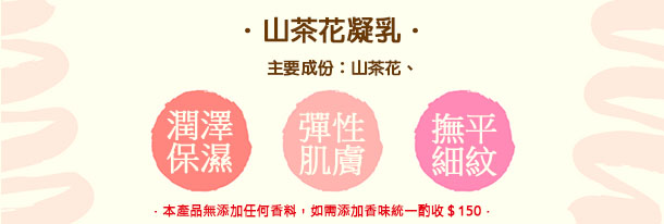 這款山茶花凝乳可舒緩肌膚及防止肌膚老化,增加肌膚防禦能力,促進角質更新,達到嫩白、保濕,使肌膚呈現透亮光澤。