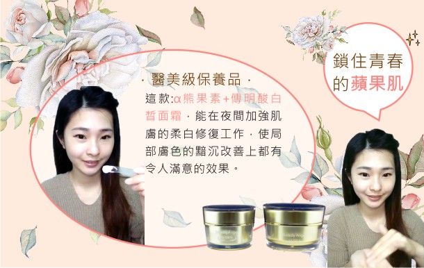 這款α熊果素+傳明酸白皙面霜,能在夜間加強肌膚的柔白修復工作,使局部膚色的黯沉改善上都有令人滿意的效果。