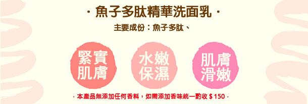 魚子多肽:淡化臉部皺紋與防止肌膚老化,緊實肌膚,使肌膚散發光彩。