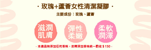 這款玫瑰+蘆薈女性清潔凝膠能清潔保養滋潤女性重點肌膚,保持私密處肌膚彈性與柔嫩,享受下半身清爽滋潤,幫助所有婦女每日私密處清潔,給私密處肌膚最柔軟的潤澤感。