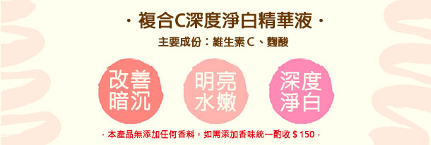 維生素C:有嫩白效果,能舒緩肌膚,改善均勻膚色,具有提升肌膚的防護力