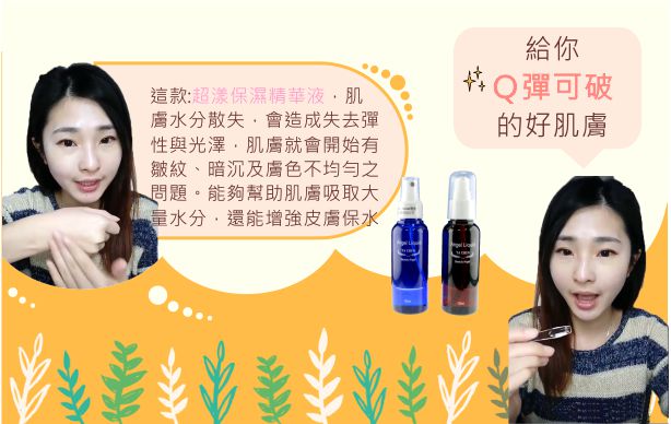 這一款,超漾保濕精華液,肌膚水分散失,會造成失去彈性與光澤,肌膚就會開始有皺紋、暗沉及膚色不均勻之問題。能夠幫助肌膚吸取大量水分,還能增強皮膚長時間的保水能力。