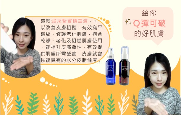 這一款,煥采緊實精華液,可以改善皮膚粗糙,有效撫平皺紋,修護老化肌膚,適合乾燥、老化及粗糙肌膚使用,能提升皮膚彈性,有效提供肌膚所需營養,皮膚就會恢復本來所具有的水分和皮脂的平衡,穩定地創造健康的肌膚。