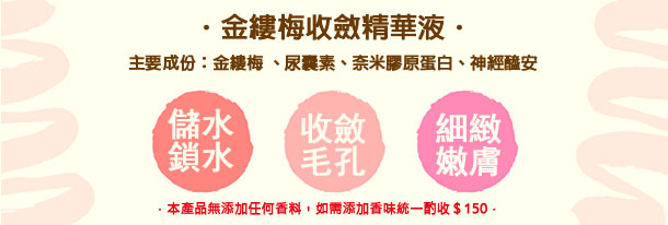 金縷梅純露 :金縷梅純露有清潔肌膚作用,能收斂毛孔、保濕,不會造成皮膚乾燥。