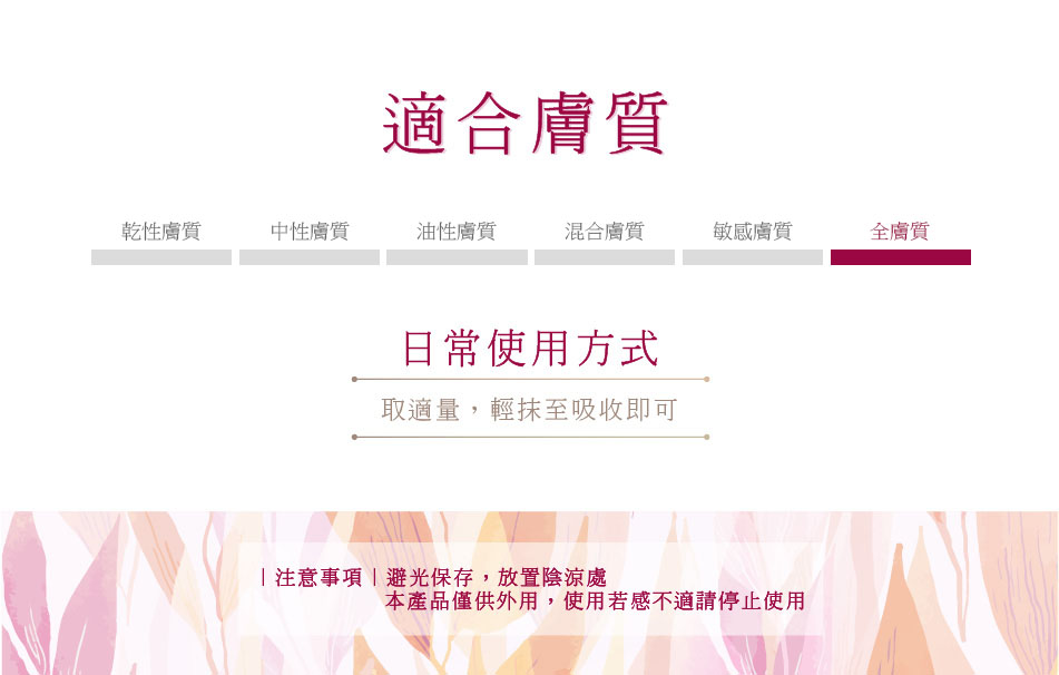 海藻 : 延緩肌膚老化,調理肌膚油水平衡,調整皮膚老化皺紋等問題肌膚。
