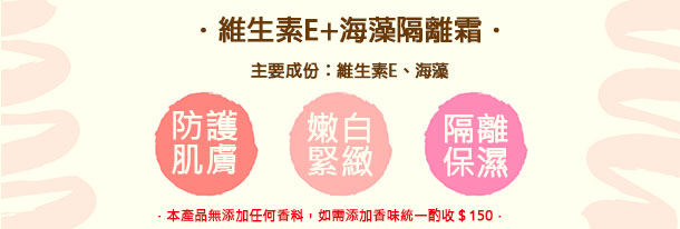 這款:維生素E+海藻隔離霜能保濕以及滋潤皮膚,淡化皺紋,延緩衰老,還能預防紫外線的作用