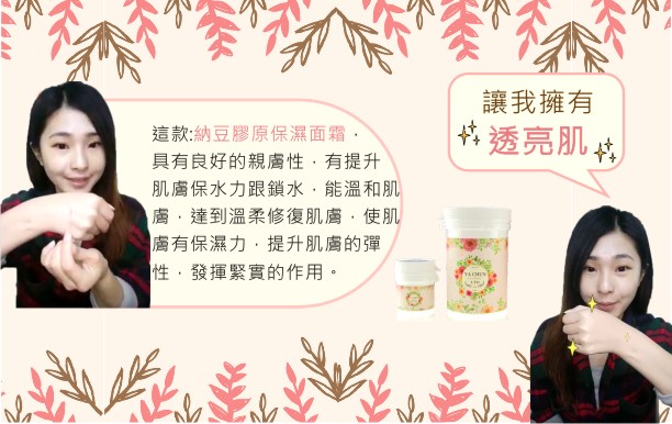 這款:納豆膠原保濕面霜,具有良好的親膚性,有提升肌膚保水力跟鎖水,能溫和肌膚,達到溫柔修復肌膚,使肌膚有保濕力,提升肌膚的彈性,發揮緊實的作用。
