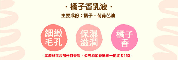 這款橘子香乳液,能增進保濕效果,給予肌膚滋潤,能保護肌膚,並且能細緻毛孔、撫平皺紋,能恢復肌膚彈力與緊實,保持肌膚的健康。
