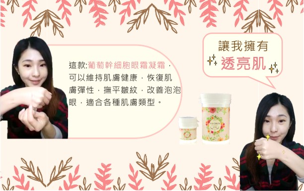 葡萄幹細胞眼霜凝霜,可以維持肌膚健康,恢復肌膚彈性,撫平皺紋,改善泡泡眼,適合各種肌膚類型。