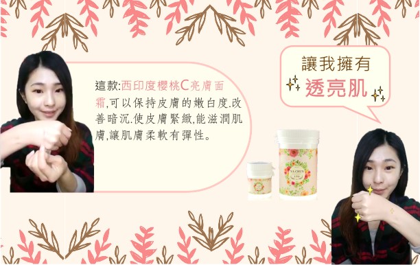 這款西印度櫻桃C亮膚面霜,可以保持皮膚的嫩白度、改善暗沉,使皮膚緊緻,能滋潤肌膚,讓肌膚柔軟有彈性。
