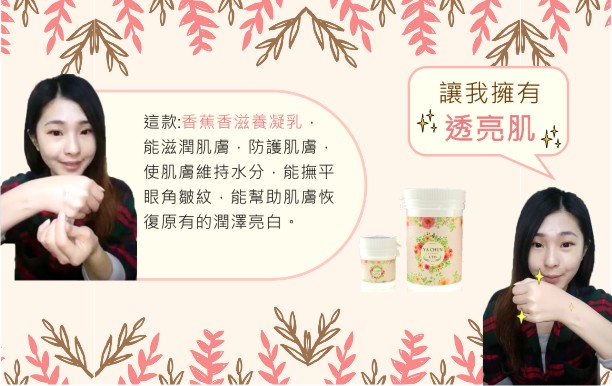 這款香蕉香滋養凝乳,能滋潤肌膚,防護肌膚,使肌膚維持水分,能撫平眼角皺紋,能幫助肌膚恢復原有的潤澤亮白。