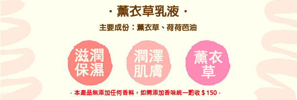 薰衣草乳液針對肌膚有保濕、延緩肌膚老化、改善暗沉、調理肌膚水油平衡,提升肌膚使用後的彈性與柔嫩,重現肌膚的光采。