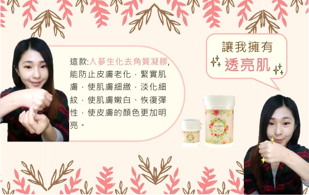 人蔘生化去角質凝膠能防止皮膚老化,緊實肌膚,使肌膚細緻,淡化細紋,使肌膚嫩白、恢復彈性,使皮膚的顏色更加明亮。