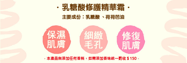 這款乳糖酸修護精華霜,能均勻肌膚膚色,促進皮膚新陳代謝,舒緩安撫,加強肌膚防禦力,有保溼,減緩肌膚老化、使肌膚從中得到保濕滋潤的作用、修復受損肌膚。