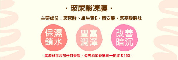 玻尿酸:含有大量保溼因子,保濕效果良好,使皮膚水分豐富而潤澤。