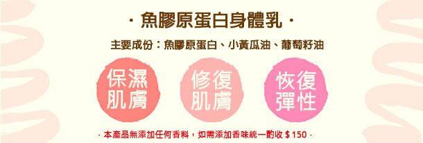 魚膠原蛋白:強力保濕效果,可強化肌膚鎖水功能。