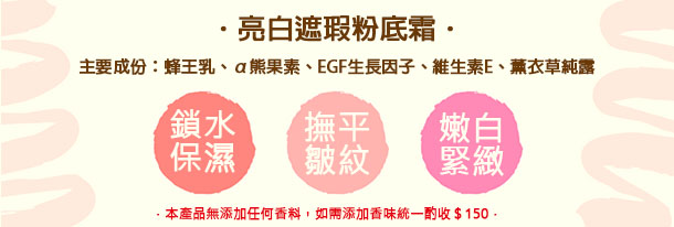 這款亮白遮瑕粉底霜,延緩皮膚衰老,可以幫助肌膚維持水分,使肌膚潤澤光滑有彈性,預防紫外線的作用,防曬同時潤色,使肌膚清爽透氣不負擔。