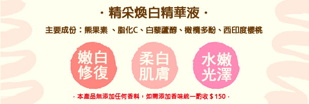 這款:精采煥白精華液能舒緩疲憊肌膚的舒適感並滋養肌膚,溫和改善暗沉,使鬆弛的肌膚有緊實的作用,賦予肌膚彈性水嫩,改善皮膚暗沉,提高膚色明亮度。