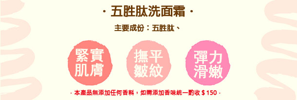 這款:五胜肽洗面霜,具彈力、鎖水、滑嫩,保濕持久性,能修護、亮白肌膚防止肌膚老化,恢復肌膚彈性,使皮膚光滑細緻。