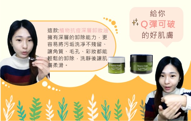 這款:植物深層卸妝油擁有深層的卸除能力,更容易將污垢洗凈不殘留、讓角質、毛孔、彩妝都能輕鬆的卸除,洗靜後讓肌膚淨化柔滑。